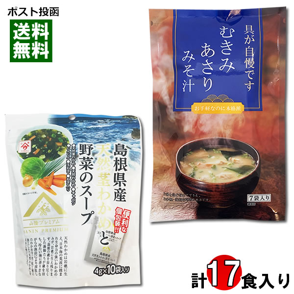 | 29 |  | 【みどり商店】 ...! ●むきみあさりみそ汁 わかめとネギの入ったむきみあさりのみそ汁です。お手軽なのに本格派のみそ汁を、ご家庭でお気軽にお試しください。 ●島根県産天然茎わかめと野菜のスープ 天然わかめは岩礁に生え、日本海の荒波に揉まれ生命力の強いわかめのみが、岩礁に生え残ります。 ... |