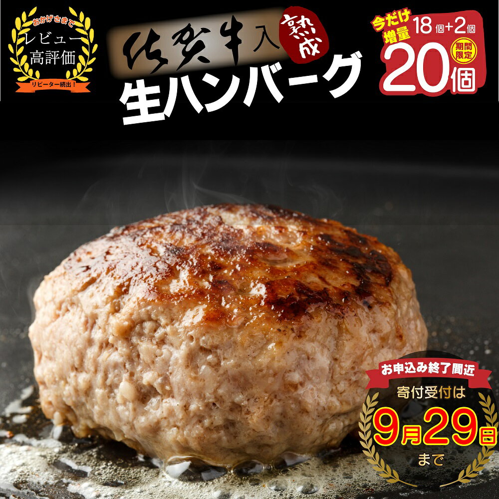 | 1 |  | 【佐賀県みやき町】 レビュー:374件 名称 【ふるさと納税】【最長半年待ちの大人気】佐賀牛入り熟成ハンバーグ18個+2個【期間限定】(FM031) 賞味期限 製造より180日 内容量 佐賀牛入り熟成ハンバーグ120g×2個×10袋 アレルギー 卵、乳成分、小麦、牛肉、豚肉 配送方法 冷凍、準備出来次第発送【最長半年待ちの大人気】 提供元 株式 ... |