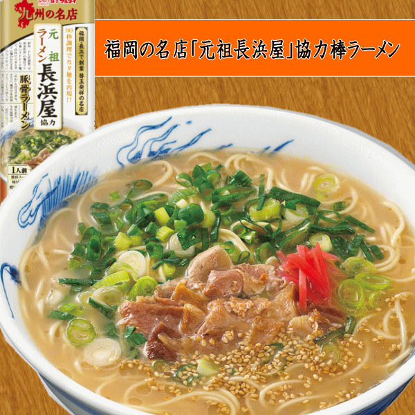 | 1 |  | 【マルタイラーメン 楽天市場店】 レビュー:7件 博多の有名店、福岡長浜で創業五十余年の「元祖長浜屋」協力のもと、再現した商品!! ●元祖長浜屋協力・棒ラーメン(1人前)12個セット 一括表示 名称 即席中華めん 原材料名 めん〔小麦粉(国内製造)、食塩、植物性たん白、還元水飴〕、スープ(ポークオイル、ポークエキス、たん白加水 ... |