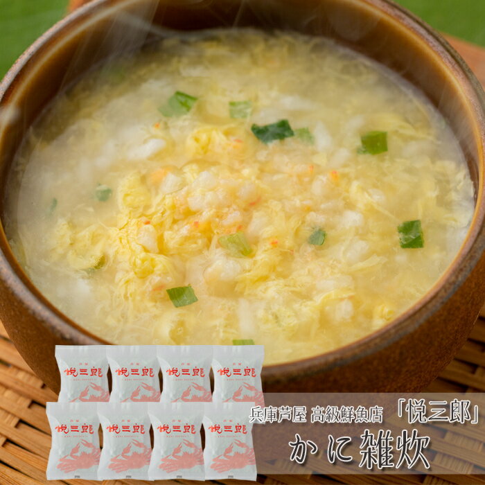 | 11 |  | 【グルメダイニング友楽堂】 商品情報商品名兵庫芦屋 高級鮮魚店悦三郎 かに雑炊(10袋) 3650048内容量かに雑炊(フリーズドライ)21g×10商品説明悦三郎は、本当に良い魚をお届けしたいという思いから淡路島や全国の漁港などから鮮度抜群の魚を目利きし旬の魚をご用意して悦三郎は本物志向のお客様に、魚の良さを発信し続け ... |