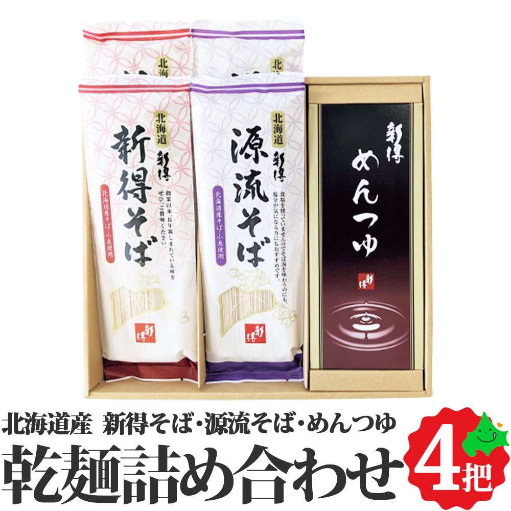 | 23 |  | 【ギフト&グルメ北海道】 商品名 北海道 新得そば 詰め合わせ(SB-20T) 商品内容 ・新得そば 180g×2 ・源流新得そば 180g×2 ・めんつゆ 75ml×4 商品説明 自社製粉した鮮度の高い北海道産そば粉を使用しています。 うどんは北海道産小麦粉使用。そばの産地・新得町で、道産の挽きたてそば粉を使用した高品質そばです。 風味と食 ... |