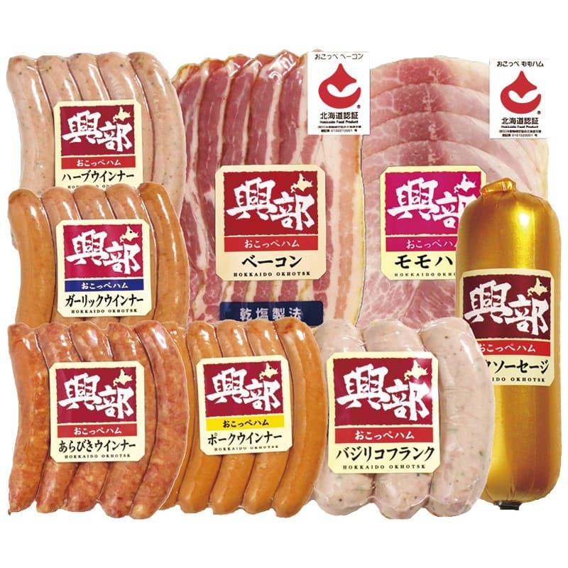 | 8 |  | 【北海道 ポイント・きた蔵の畑】 ハム ギフト はこちら ギフト・贈り物・贈答品 はこちら 興部ハム 商品一覧 はこちら 名称:北海道 興部 おこっぺ ハム 詰め合わせ 内容量: ・ベーコンスライス 80g ・モモ ハム スライス 85g ・あらびき ウインナー 110g ・ガーリック ウインナー 110g ・ポークウインナー 120g ・北海道 ポークフラン ... |