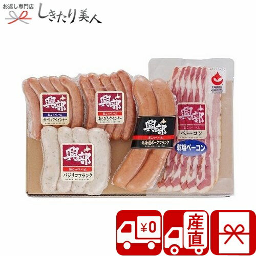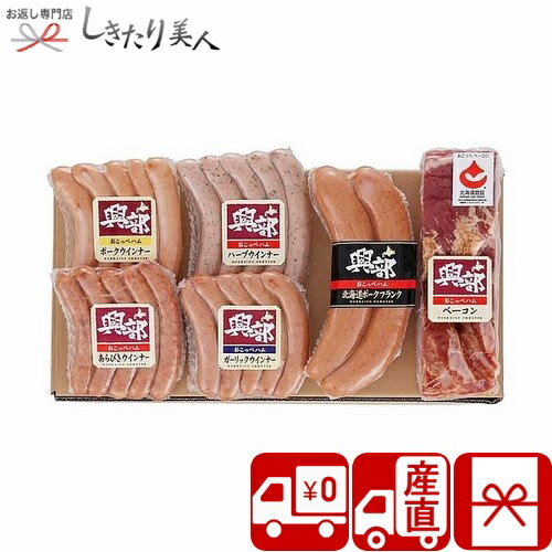 | 30 |  | 【お返し ギフト専門店 しきたり美人】 販売開始:2025/10/26 10:00 販売終了:2025/12/12 09:00 ▼手順を動画で説明しております。ぜひご覧ください▼ 【内容】北海道認証ベーコンブロック(300g)・北海道ポークフランク(220g)・ハーブウインナー(135g)・ポークウインナー(120g)・ガーリックウインナー・あらびきウインナー(各110g)×各1【賞味期間】冷蔵28日【箱入重量】0.9kg※離島は ... |