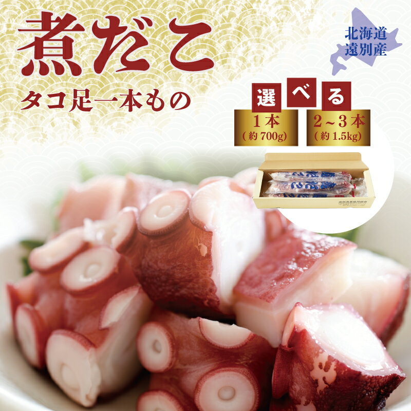 | 1 |  | 【北海道遠別町】 レビュー:21件 商品説明 名称 選べる☆旨み抜群☆遠別煮タコ足セット 約1.5kg or 約700g 内容量 煮タコ 約1.5kg ※足2〜4本(目安)or 約700g ※足1本(目安) 賞味期限 出荷日より180日 ※賞味期限は製造日より365日を設定しておりますが、ご寄附時期や在庫状況によって変動するため出荷日より180日にてご案内して ... |