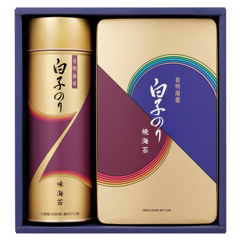 | 29 |  | 【暮らしのギフト 「Lumiere」】 白子のり 海苔詰合せ 創業1869年の老舗メーカー「白子のり」 香ばしさあふれる海のご馳走、白子のりの定番品。 美味しい味海苔が楽しめるギフト。大人も子供も納得の味と品質。 ご進物や各種お返しにオススメのギフトです。 ●内容:味のり12袋詰(8切5枚)・焼のり3袋詰(板のり5枚)・焼の ... |