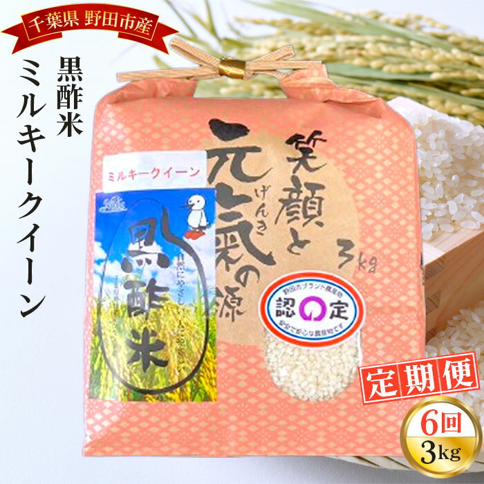 | 4 |  | 【千葉県野田市】 ...合がございます。配送日時指定のご希望や事前連絡等の対応はいたしかねますので予めご了承の程宜しくお願い致します。※返礼品の送付は、千葉県野田市外にお住まいの方に限らせていただきます。 製品仕様 名称 精米 規格・内容量 黒酢米ミルキークイーン 精米3kg×1袋 月1回×6ヵ月 ... |