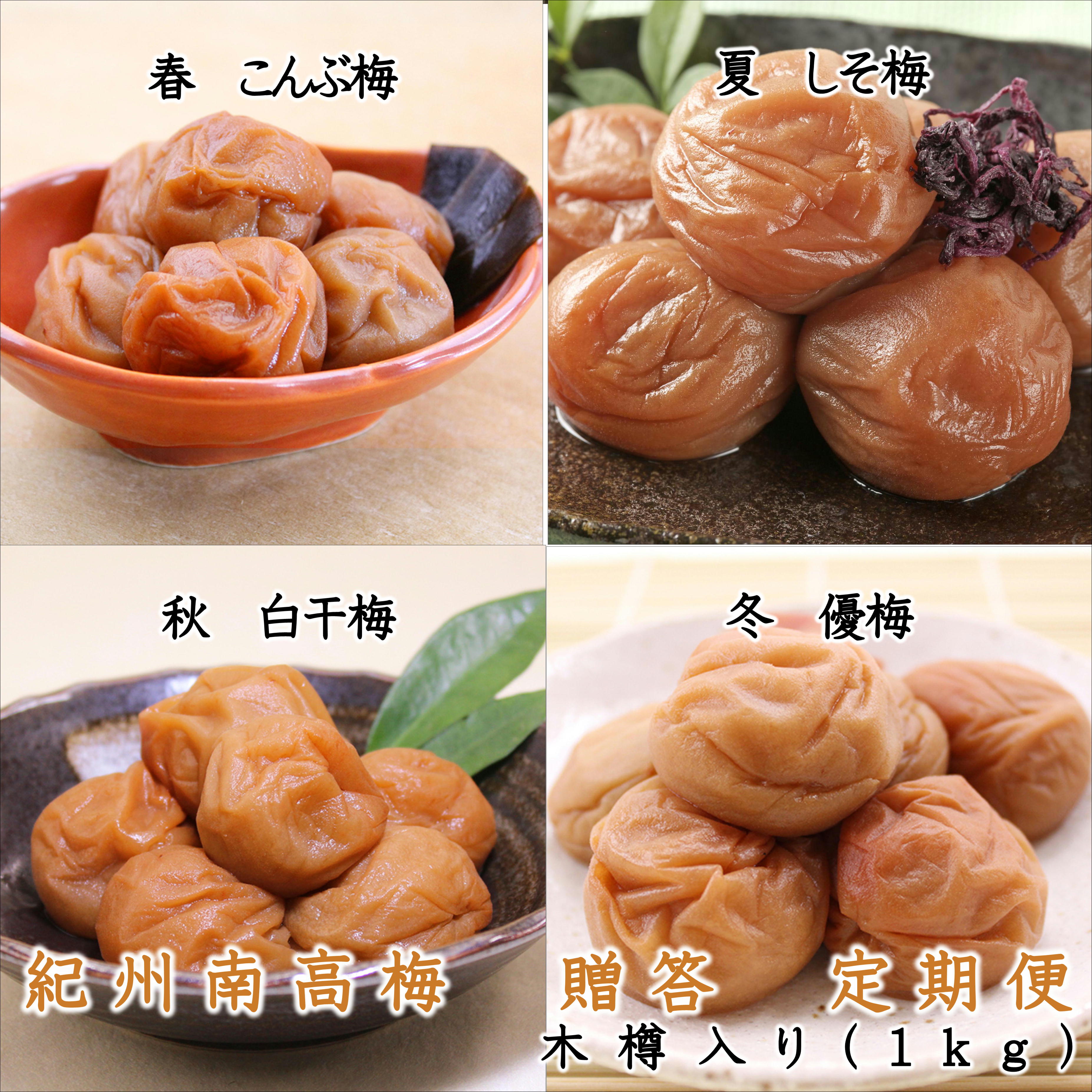 | 29 |  | 【和歌山県御坊市】 ...こんぶ梅(5月発送)、しそ梅(8月発送)、白干梅(11月発送)、優梅(2月発送)【※こちらの返礼品は印南町との共通返礼品です】 商品説明 名称 御坊市 紀州南高梅の贈答定期便(春・夏・秋・冬)4回 B 内容量 5月:こんぶ梅(木樽入り)1kg 8月:しそ梅(木樽入り)1kg 11月:白干梅( ... |