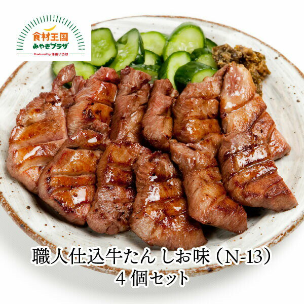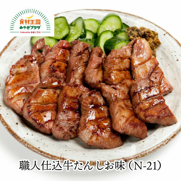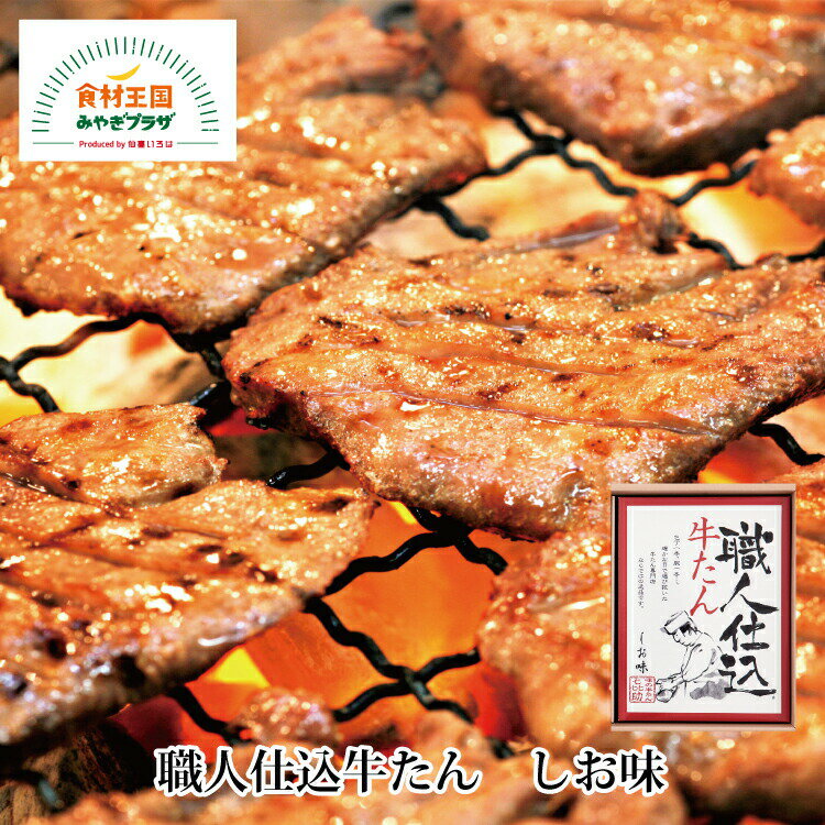 | 25 |  | 【食材王国みやぎプラザ】 レビュー:1件 牛たん仕込みのベテラン職人達が牛たんを1枚1枚厚く切り分け、さらに手ぶりで赤穂の焼き塩などで味付けし、旨味をじっくりと熟成させました 商品説明 名称 職人仕込牛たん しお味(N-13)2個セット 化粧箱なし 内容量 95g×2 賞味期限 発送日より180日 保存方法 冷凍 原材料 牛たん、食塩、こしょ ... |