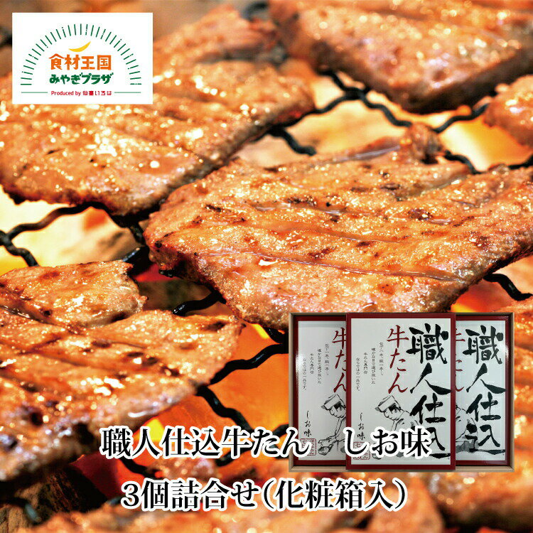 | 30 |  | 【食材王国みやぎプラザ】 牛たん仕込みのベテラン職人達が牛たんを1枚1枚厚く切り分け、さらに手ぶりで赤穂の焼き塩などで味付けし、旨味をじっくりと熟成させました ※化粧箱入り のし対応可 商品説明 名称 職人仕込牛たん しお味(N-21)3個詰合せ(化粧箱入) 内容量 130g×3 賞味期限 発送日より180日 保存方法 冷凍 原 ... |