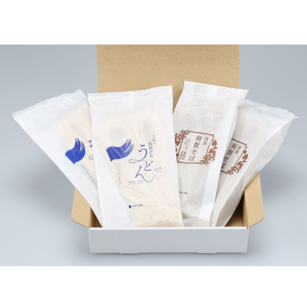 | 23 |  | 【百選横丁 楽天市場店】 ■商品名…清流利賀そば・国産小麦 能登塩使用 手延べ極細清流うどん 各2袋入簡易包装セット ■内容量…清流利賀そば(180g×2袋)、手延べ極細清流うどん(180g×2袋) ■原材料 〇利賀そば…そば粉(国内製造)、小麦粉、小麦蛋白、食塩 〇手延べ極細清流うどん…小麦粉、食塩、綿実油 ■アレ ... |