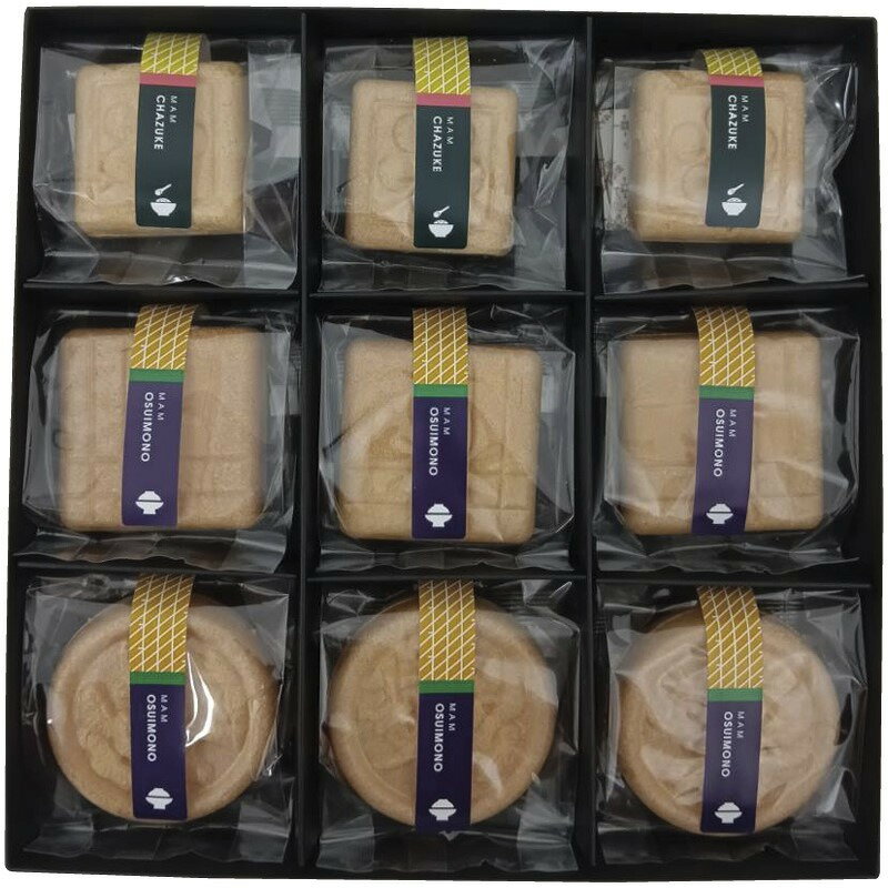 | 21 |  | 【MOKOMOKO青山】 ...に、美味しいスープを閉じ込めました。お茶漬けとお吸い物が入ったお得なセットです。お湯をかけるとふわりとスープに変わります。最中は富山県福光産の新大正米100%のモチ米を使用し、スープは700種類以上ある原料の中から独自の経験とノウハウで配合し完成させた自慢のスープです ... |