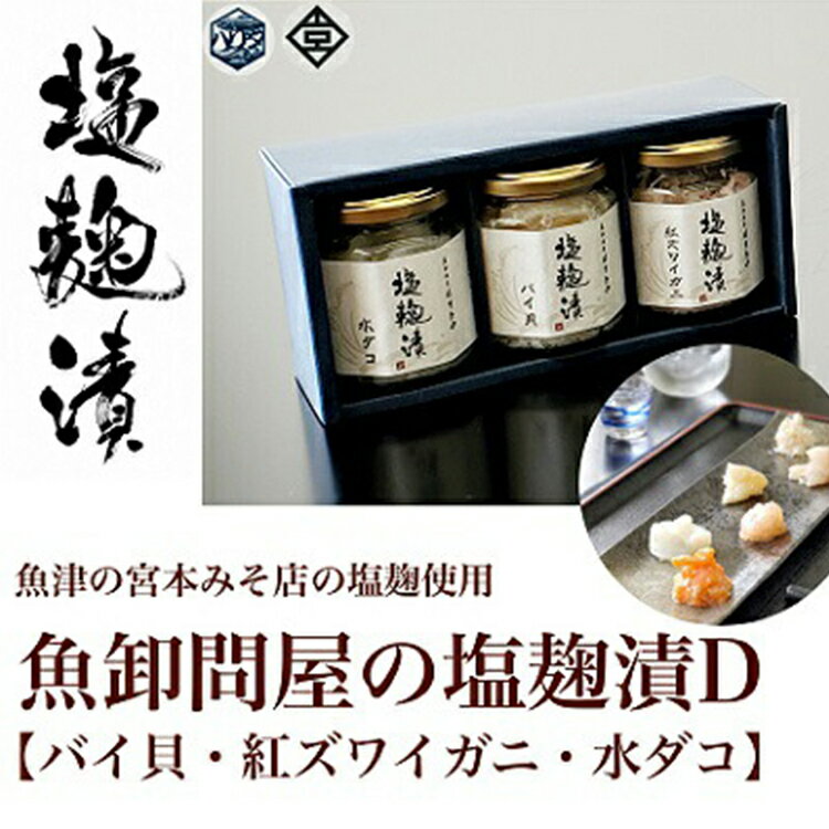 | 11 |  | 【富山県魚津市】 ●地元素材にこだわった塩麹漬● 魚卸問屋はりたやが厳選した新鮮な魚介類と魚津市宮津地区の老舗「宮本みそ店」の塩麹を使った自家製の塩麹漬です。ごはんにもお酒にも合う逸品!冷凍でのお届けなので、好きな時に解凍してご賞味いただけます。 ・バイ貝:かご縄漁で漁獲される深海性の ... |