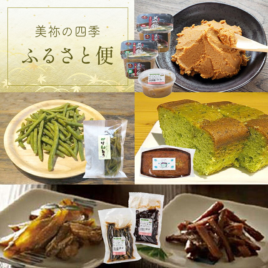 | 29 |  | 【山口県美祢市】 販売開始:2022/04/04 00:00 販売終了:2122/03/08 00:00 美祢の四季 ふるさと便 ふるさと美祢から米みそやなす辛子漬け等の懐かしい味をお届け致します。 商品説明 名称 美祢の四季 ふるさと便 内容量 米みそ(750g)、麦みそ(750g)、ゆずみそ(200g)、きゃらぶき(150g)、なす辛子漬け(160g)、 ほうれん草かりんとう(120g)、かきもち(260g)、ほうれん草パウンドケー ... |