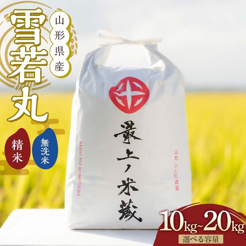 | 23 |  | 【山形県新庄市】 返礼品詳細 名称 【ふるさと納税】 令和7年産 雪若丸 《選べる容量 10kg / 20kg・ 精米 / 無洗米》 【最上ノ米蔵】 山形県産 こめ お米 米 白米 F3S-2599var 内容量 精米種別と容量をお選びください ・精米 10kg (5kg×2袋) ・精米 20kg (5kg×4袋) ・無洗米 10kg (5kg×2袋) ・無洗米 20kg (5kg×4袋) 産地 山形 ... |