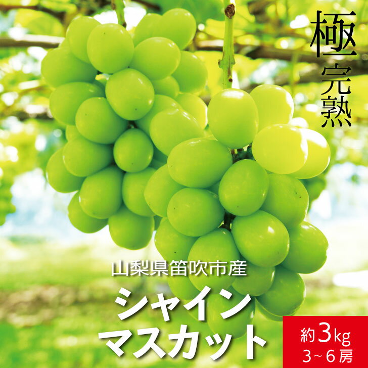 | 13 |  | 【山梨県笛吹市】 レビュー:314件 販売開始:2024/09/05 16:00 販売終了:2026/10/31 23:59 商品情報 商品名 【2026年発送★先行予約】笛吹市産 大粒シャインマスカット 1.0kg〜3.0kg 内容量 1.0kg以上(2房)〜3.0kg(4〜6房) 発送時期 【25年発送】・・2025年8月上旬〜10月下旬頃、用意ができ次第順次発送予定 【26年発送】・・2026年8月上旬〜10月下旬頃、用意ができ次第順次発送予定 ※青果 ... |
