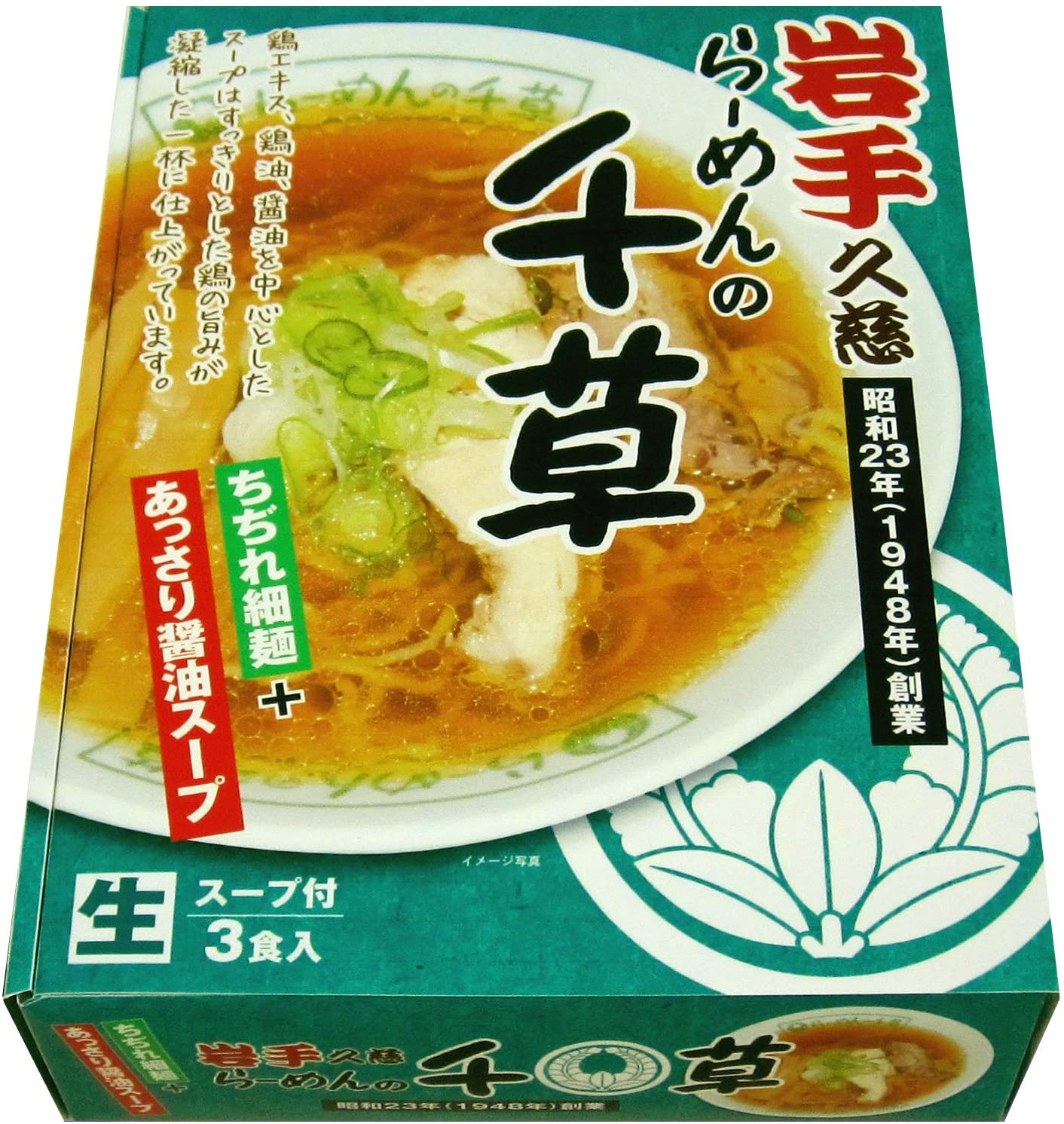 | 20 |  | 【秋田物産KHSHOP】 岩手県久慈市の有名ラーメン店「らーめん千草」の味をご家庭で簡単に召上れるよう、店主と共同開発しました。 らーめん千草は昭和23年創業の老舗の名店で、現在も多くのお客様で賑わっております。 また新横浜ラーメン博物館への出店経験を持っております。 ちぢれ細麺に鶏の旨味の強い中 ... |