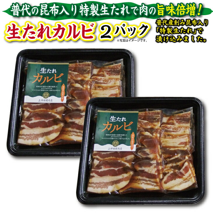 | 14 |  | 【岩手県普代村】 レビュー:1件 商品説明 名称 生たれカルビ(豚肉) 商品説明 普代の昆布入り特製生たれで漬け込んだ地元のおいしい豚肉です。たっぷり入った普代のきざみ昆布のうま味がお肉のおいしさを一層引き立てます。 内容量 生たれカルビ(300g)×2パック 原材料 【生たれカルビ(豚肉)】豚肉、醤油(大豆・小麦) ... |