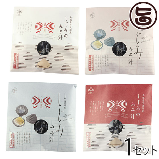 | 1 |  | 【おみやげ楽市】 八雲縁結び 即席しじみ汁(赤だし味噌) 宍道湖で生まれ「海人の藻塩」で砂抜きをされたしじみのみそ汁です。 お湯を注ぐだけで簡単にお召し上がりいただけます。 |