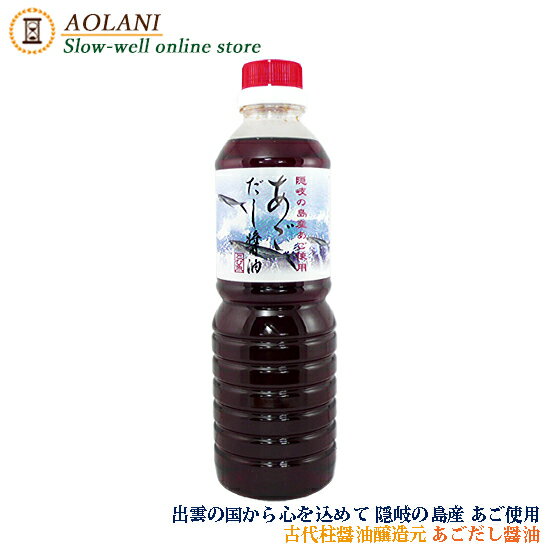 | 23 |  | 【AOLANI Slow-well online store】 古代柱醤油醸造元のあごだし醤油は、、、、 ■島根県 隠岐の島産のあごを使用しています。■乾物にするとタンパク質がアミノ酸に分解されて旨みの出るあごは昔からダシを取るのに用いられます。■うすくち醤油をベースに隠岐の島産のあごをふんだんに使った贅沢なだし醤油です。■作り手 ... |