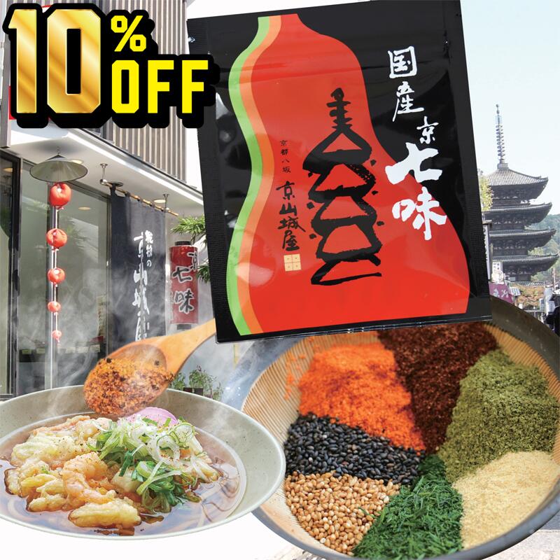 | 3 |  | 【乾物の山城屋 楽天市場店】 レビュー:12件 販売開始:2025/12/03 20:00 販売終了:2025/12/11 01:59 【4日20時~11日1時59分まで 10%OFF】1000円ポッキリ 送料無料 国産 京七味 15g×1袋 山城屋 公式 伝統 七味 極上 七味唐辛子 とうがらし うどん そば 焼鳥 鍋物 味噌汁 豚汁 納豆 冷奴 漬物 ラーメン お好み焼き きんぴら 麻辣湯 一味 山椒 ごま 青のり 最強 SALE 10% 京都 東山 八坂 京山城屋で大人気のお土産 ... |