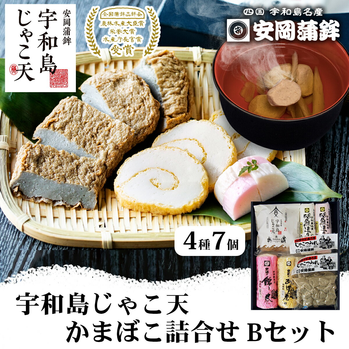 | 4 |  | 【愛ある愛媛いいよかん】 レビュー:1件 商品情報 内容量 宇和島じゃこ天10枚、活魚造り1本、じゃこちくわ2本、えそちくわ3本 賞味期限 製造日より8日間 保存方法 要冷蔵 配送方法 クール便(冷蔵) ※メーカー直接配送商品 ※他のメーカーの商品との同梱はできません。 特徴 安岡のじゃこ天は、冷凍のすり身は一切使用せず鮮度のよい ... |