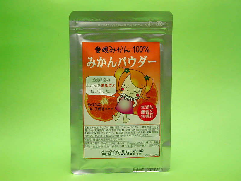 | 18 |  | 【和風雑貨と有田みかん心斎橋花房】 【送料無料(北海道、沖縄は1000円)】 【特徴】 ・愛媛県産温州みかん100%のパウダー ・皮も実も温州みかんまるごと。 ・無添加、無着色、無香料 ・とても爽やかな柑橘の風味と香りをお楽しみいただけます。 ・100g中に含まれるβ-クリプトキサンチンは7460μg (日本食品分析センター調べ) 【お召 ... |