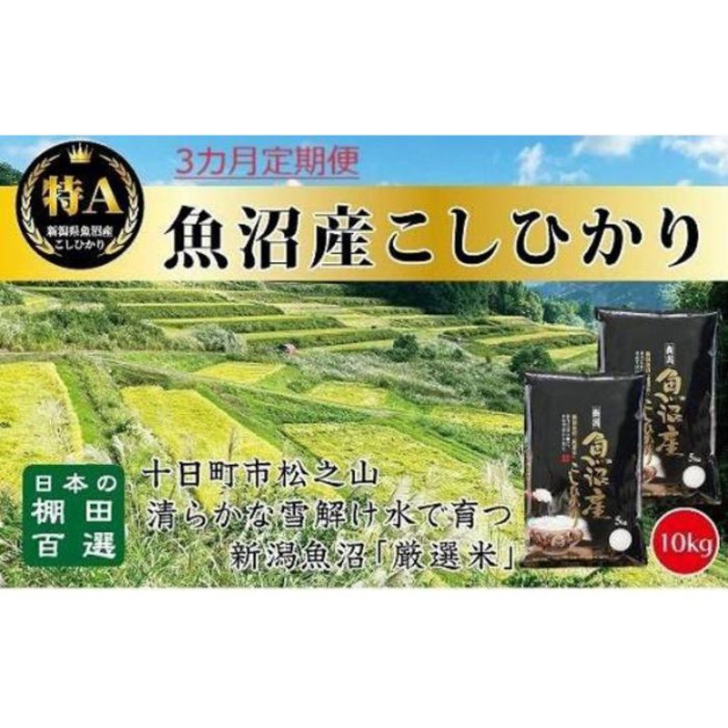| 3 |  | 【新潟県公式ショップ 新潟直送計画】 商品説明 内容 魚沼産 棚田栽培コシヒカリ(特別栽培米)精米 10kg 配送方法 ヤマト運輸(通常便) 賞味期限 風味の劣化を避けるため、精米後1ヵ月以内にお召し上がり下さい 保存方法 暗所保存 返品交換 生鮮品・食品などの商品の性質上、返品・交換はお受けできません。 ただし、配送中の事故 ... |