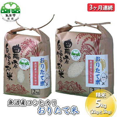 | 12 |  | 【新潟県魚沼市 ふるさと納税】 ...産コシヒカリ おりたて米 精米5kg(2kgと3kg) 3ヶ月連続 お米 3カ月 3回 お届け:寄附入金月の翌月より発送 尾瀬の玄関口、越後駒ヶ岳の麓に位置する湯之谷温泉郷の折立温泉・下折立で生産した魚沼産コシヒカリです。当地下折立では約400年前の江戸時代から続く伝統行事「百八灯」にこの ... |