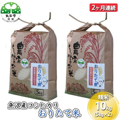 | 11 |  | 【新潟県魚沼市 ふるさと納税】 ...】魚沼産コシヒカリ おりたて米 精米10kg(5kg×2) 2ヶ月連続 お米 2回 お届け:寄附入金月の翌月より発送 尾瀬の玄関口、越後駒ヶ岳の麓に位置する湯之谷温泉郷の折立温泉・下折立で生産した魚沼産コシヒカリです。当地下折立では約400年前の江戸時代から続く伝統行事「百八灯」にこ ... |