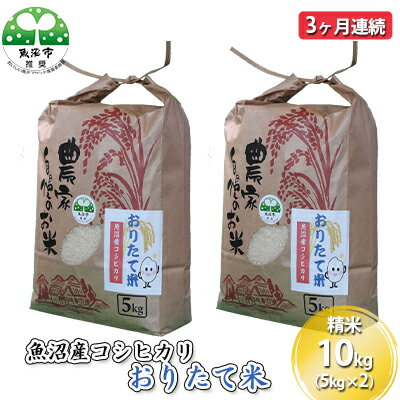 | 19 |  | 【新潟県魚沼市 ふるさと納税】 ...産コシヒカリ おりたて米 精米10kg(5kg×2)3ヶ月連続 お米 3カ月 3回 お届け:寄附入金月の翌月より発送 尾瀬の玄関口、越後駒ヶ岳の麓に位置する湯之谷温泉郷の折立温泉・下折立で生産した魚沼産コシヒカリです。当地下折立では約400年前の江戸時代から続く伝統行事「百八灯」にこの ... |