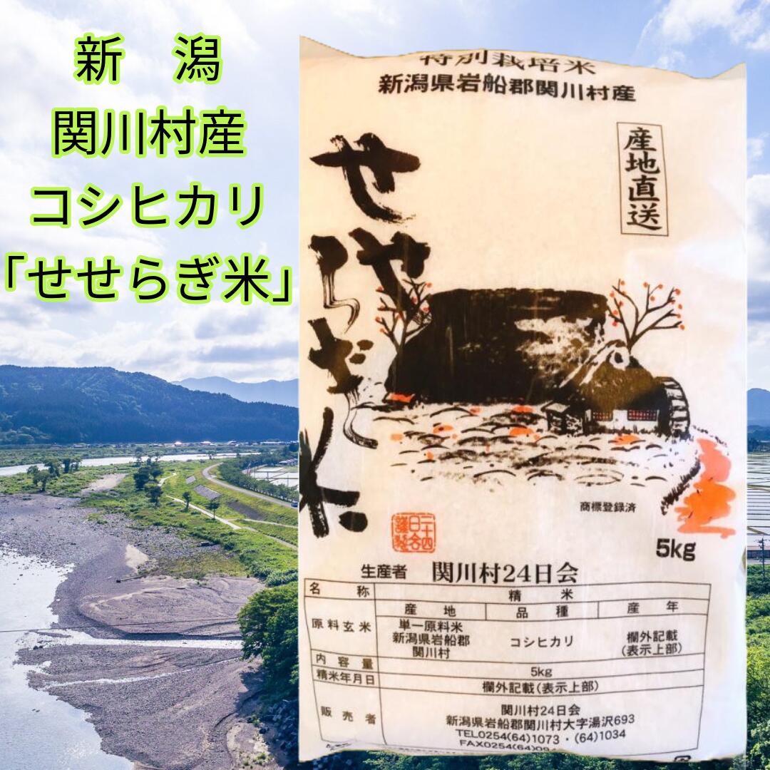 | 4 |  | 【えちごせきかわ丸重商店】 レビュー:8件 【関川村産 コシヒカリ「せせらぎ米」】 新潟県は山形県との県境地にある山間地域の小さな村の湯沢地区の指定農家で栽培されたコシヒカリ。 関川村の中心を流れる一級河川の荒川へ流れる沢から豊富で冷たい水をかけて、日中と朝晩の寒暖差で一層美味しく丹精込めて育てた美味しいお米 ... |