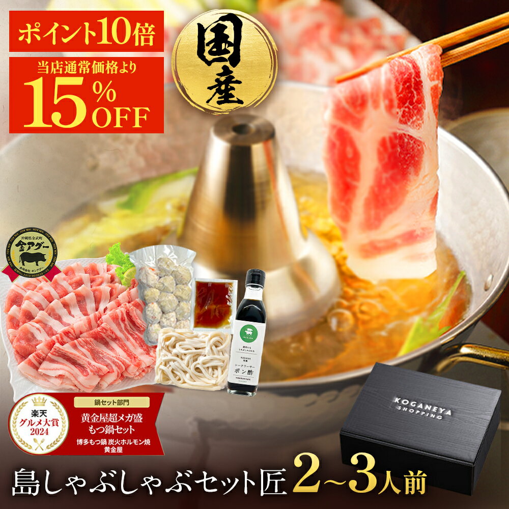 | 26 |  | 【博多もつ鍋 炭火ホルモン焼 黄金屋】 レビュー:37件 販売開始:2025/11/20 20:00 販売終了:2025/12/01 23:59 商品詳細 内容量 ■金アグー豚スライス 合計300g(100g×3パック)(要冷凍-18℃以下) ■厳選鶏つくね(鶏しんじょう・鶏つみれ) 300g×1パック(要冷凍-18℃以下) ■選べるしゃぶしゃぶ出汁 出汁50g×1パック(要冷凍-18℃以下)もしくは濃縮100g5種スープ×1パック(直射日光を避け常温で保存) ■四万十うど ... |