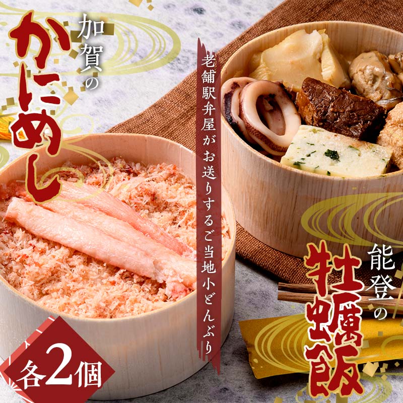 | 11 |  | 【石川県加賀市】 ...ておりません。寄付をいただく度にお届けいたします。 商品概要 ご当地駅弁を小さなどんぶりに、4種の味が気軽に楽しめます 内容量・サイズ等 ・加賀のかにめし(150g)×1 ・能登の牡蠣飯(190g)×1 ・金沢大野醤油の牛おこわめし(135g)×1 ・釜飯風のどぐろめし(190g)×1 賞味期限 180日 ... |