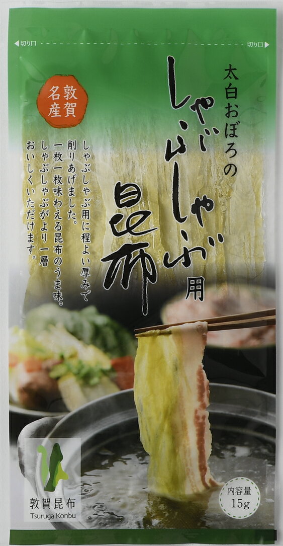 | 26 |  | 【敦賀昆布おぼろや 楽天市場店】 レビュー:1件 商品名 太白おぼろのしゃぶしゃぶ用昆布 内容量 15g 原材料 昆布(北海道道南産)、醸造酢 保存方法 直射日光、高温多湿をさけて常温で保存してください。 賞味期限 240日 加工者 敦賀昆布株式会社 福井県敦賀市本町1丁目21-2 |