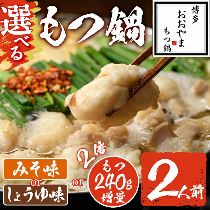 | 24 |  | 【福岡県春日市】 製品仕様 商品名 <選べる!みそ味orしょうゆ味orもつ増量>もつ鍋 国産若牛小腸のみ使用(2人前) 名称 もつ鍋 内容量 ※みそ味かしょうゆ味をお選び頂けます。 ※もつ2倍増量(+240g)をお選び頂けます。 ■もつ鍋みそ味2人前(もつ通常量) [牛もつ240g、みそスープ280g+150g、ちゃんぽん麺300g、ごま5g、 ... |