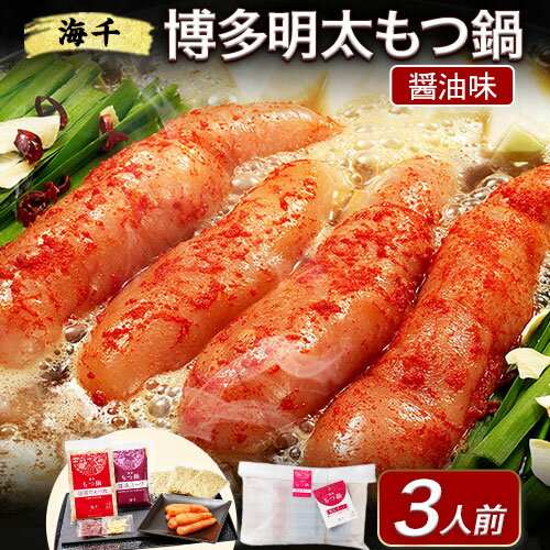 | 7 |  | 【福岡県鞍手町】 商品情報 博多明太もつ鍋 3人前【醤油味】 名称 鍋セット 内容量 牛もつ300g、醤油スープ300g、ちゃんぽん麺150g×3玉、辛子明太子(匠)300g、薬味(にんにくチップ、唐辛子) 原材料 【牛もつ】牛小腸カット(国内産)【醤油加工品】醤油、米発酵調味料(米醸造液、ぶどう糖、 アルコール、食塩)、糖類 ... |