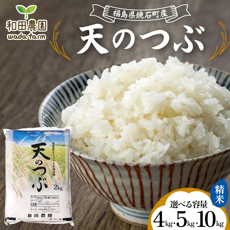 | 23 |  | 【福島県鏡石町】 販売開始:2024/05/14 00:00 販売終了:2026/04/30 23:59 返礼品詳細 内容量 天のつぶ 精米 ※容量をお選びいただけます ・ 4kg(2kg×2袋) ・ 5kg×1袋 ・10kg(5kg×2袋) 産地 福島県鏡石町 品種 天のつぶ 産年 2025年 賞味期限 精米から1ヶ月 アレルギー 特定原材料8品目は使用していません。特定原材料に準ずる20品目は使用していません。 配送方法 常温 発送 ... |