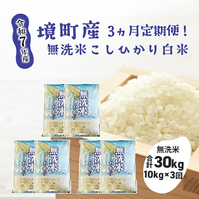 | 21 |  | 【茨城県境町】 販売開始:2025/06/03 09:38 販売終了:2026/04/30 23:59 返礼品仕様 商品名 【3ヶ月連続定期便】令和7年産 茨城県 境町産 こだわり無洗米「こしひかり」白米10kg(5kg×2袋)×3回(合計30kg) 商品説明 【令和7年産米】 境町産の中から農産物検査員の資格を持つ店主が厳選したこだわりのコシヒカリを発送直前に無洗米に精米して3ヶ月連続でお届け致します。 初 ... |