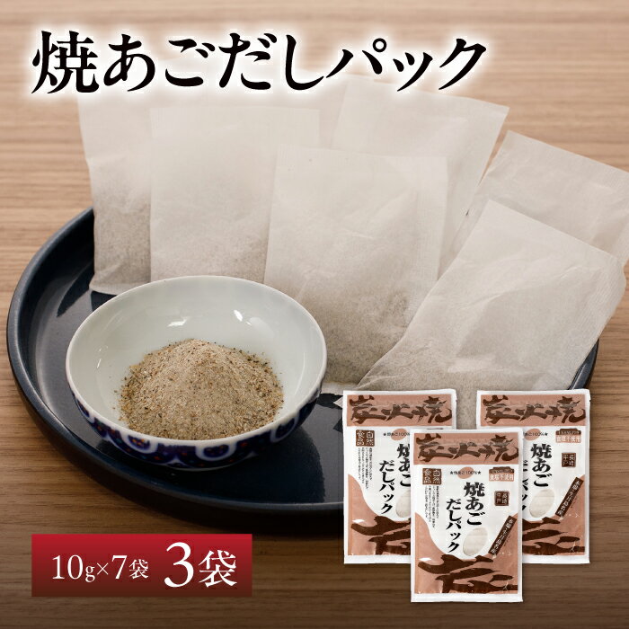 | 27 |  | 【平戸観光協会直営売店】 新鮮な飛魚(あご)を昔ながらに炭火でじっくり焼き上げ、添加物を一切使わず、手間ひまをたっぷりかけて仕上げたこだわりの焼あご粉末だしです。 名称 焼あごだしパック 原材料名 焼あご(飛魚) 内容量 1袋(10g × 7包入)× 3袋 賞味期限 製造日より常温6か月 保存方法 常温 製造者 マルイ水 ... |