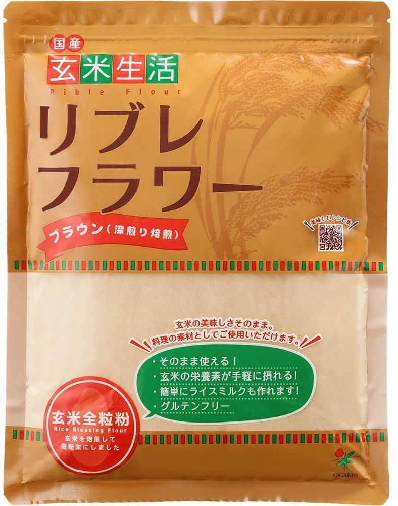 | 24 |  | 【シガリオ公式 玄米美人楽天市場店】 レビュー:10件 名称 リブレフラワー ブラウン 内容量 500g 原材料 玄米(国内産) エネルギー 390kcal(100g中) 生産国 日本 賞味期限 袋枠外右上に記載 保存方法 高温多湿・直射日光を避けてください お召し上がり方 玄米を高熱焙煎し、微粉末化していますので、そのまま飲食することができます。 消化が良く、少量(10g ... |