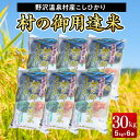 | 17 |  | 【長野県野沢温泉村】 ...。 少量の水滴などでもカビの原因となりますので、計量の際や保管時にお気を付けください。 ※着日指定不可 名称 精米 内容量 5kg×6袋 産地 長野県野沢温泉村 品種 コシヒカリ 産年 令和7年度産 使用割合 単一原料米 精米時期 別途商品ラベルに記載 消費期限 <春/夏>:約14~30日 <秋/ ... |