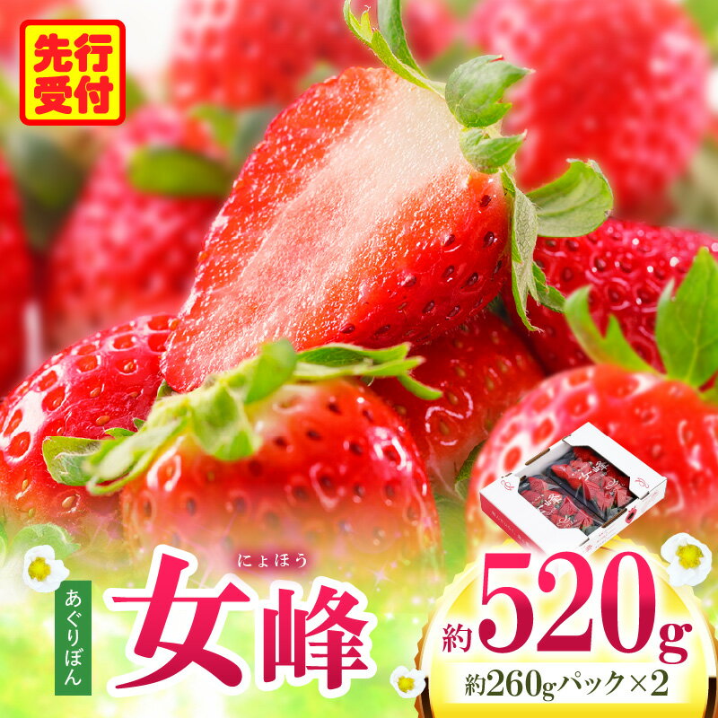 | 3 |  | 【香川県三木町】 特産品説明 名称 【ふるさと納税】あぐりぼん いちご「女峰」 約260gパック×2個(約520g) 内容量 いちご「女峰」 約260gパック×2個(約520g) 原材料 いちご 賞味期限 到着後、2日程度 ※冷蔵庫で保管のうえ、できるだけ早くお召し上がりください。 配送温度帯 冷蔵 説明 全国的に生産量が減少し ... |