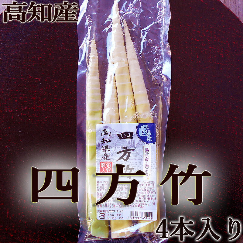 | 16 |  | 【アグリファーム高知】 【名称】四方竹(しほうちく)水煮 【内容量】3本(約90g) 【原材料】たけのこ(四方竹)、ph調整剤、酸化防止剤(ビタミンC) 【産地】高知県 【状態】茹でて、アク抜きした状態でお届けします。 【賞味期限】発送から約1ヶ月以上 【保存方法】直射日光を避け、冷暗所にて保管して下さい。 ... |