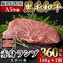 14 |  | 【鹿児島県姶良市】 レビュー:1件 ...量 【合計:360g】 1枚約180g×2枚入り アレルギー表示 牛肉 賞味期限 冷凍で60日以上 保存方法 冷凍 製造者 有限会社水迫畜産 〒891-0201 鹿児島県鹿児島市喜入瀬々串町298番地1 商品説明 鹿児島県産黒毛和牛の赤身肉で美味しい部位のランプ肉のステーキです。 約180gのステーキは食べ応えのある ... |